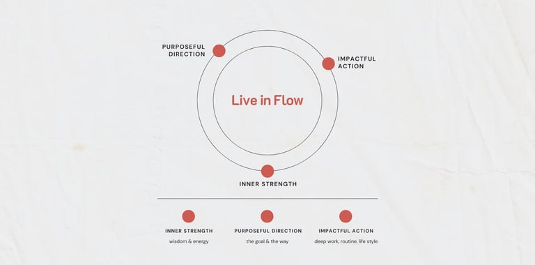 Live in Flow không tạo động lực tức thời mà giúp bạn thiết kế lại lối sống phù hợp với căn cơ của bạn; khi lối sống thay đổi, kết quả sẽ tự nhiên duy trì.